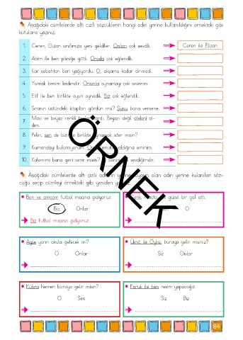Aşağıdaki cümlelerde altı çizili sözcüklerin hangi adın yerine kullanıldığını örnekteki gibi