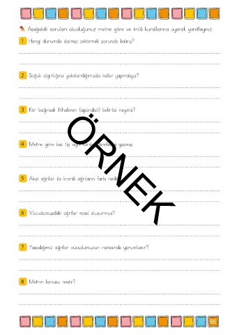 Aşağıdaki soruları okuduğunuz metne göre ve imlâ kurallarına uyarak yanıtlayınız.