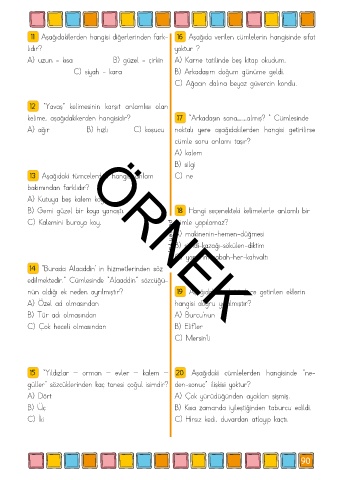15 “Yıldızlar – orman – evler – kalem – 20 Aşağıdaki cümlelerden hangisinde “ne-