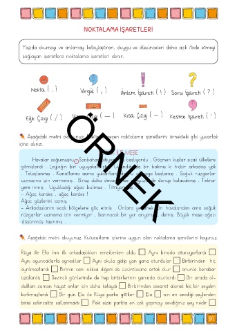 Aşağıdaki metni okuyunuz. Metinde geçen noktalama işaretlerini örnekteki gibi yuvarlak