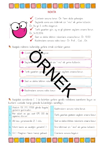 Aşağıda noktanın kullanıldığı yerlere örnek cümleler yazınız.