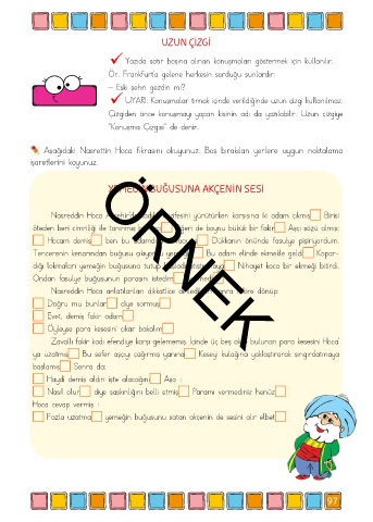 Aşağıdaki Nasrettin Hoca fıkrasını okuyunuz. Boş bırakılan yerlere uygun noktalama