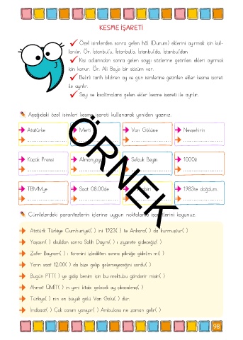 Cümlelerdeki parantezlerin içlerine uygun noktalama işaretlerini koyunuz.