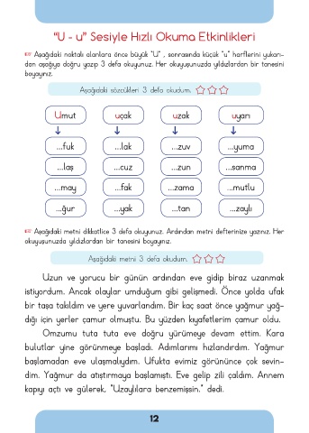 “U - u” Sesiyle Hızlı Okuma Etkinlikleri