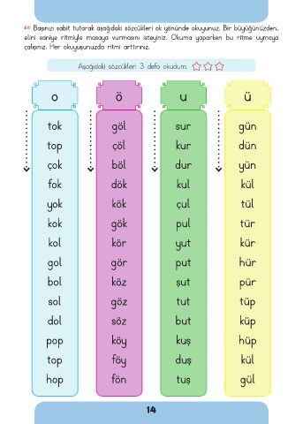 elini saniye ritmiyle masaya vurmasını isteyiniz. Okuma yaparken bu ritme uymaya
