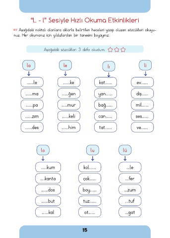 + Aşağıdaki noktalı alanlara oklarla belirtilen heceleri yazıp oluşan sözcükleri okuyu-