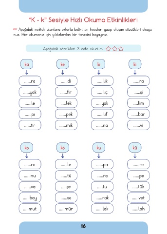 + Aşağıdaki noktalı alanlara oklarla belirtilen heceleri yazıp oluşan sözcükleri okuyu-