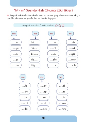 “M - m” Sesiyle Hızlı Okuma Etkinlikleri