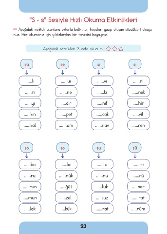 “S - s” Sesiyle Hızlı Okuma Etkinlikleri