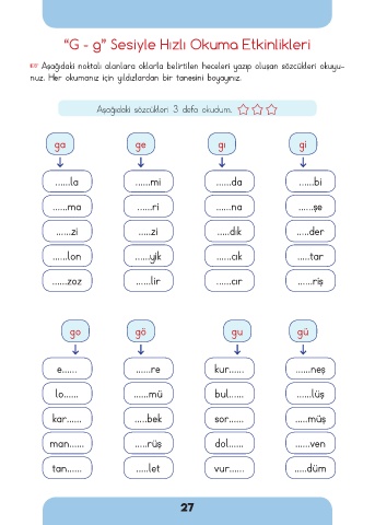 “G - g” Sesiyle Hızlı Okuma Etkinlikleri