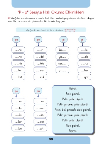 “P - p” Sesiyle Hızlı Okuma Etkinlikleri
