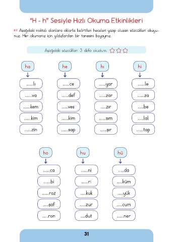 “H - h” Sesiyle Hızlı Okuma Etkinlikleri