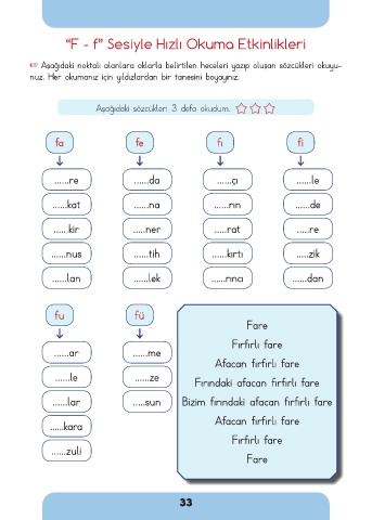 “F - f” Sesiyle Hızlı Okuma Etkinlikleri