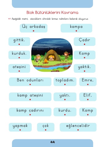 + Aşağıdaki metni, sözcüklerin altındaki kırmızı noktalara bakarak okuyunuz.