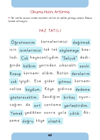 + Her satırda çerçeve içindeki sözcükleri çok hızlı bir şekilde görmeye çalışınız. Başınızı
