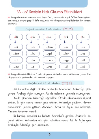 “A - a” Sesiyle Hızlı Okuma Etkinlikleri