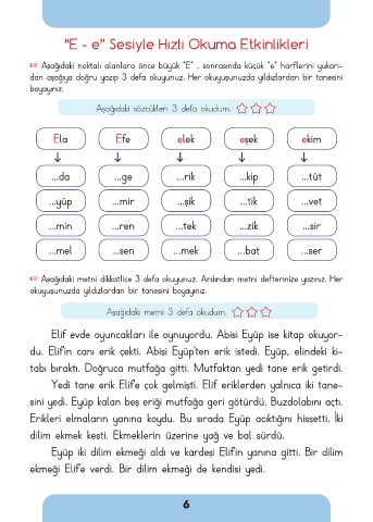 “E - e” Sesiyle Hızlı Okuma Etkinlikleri