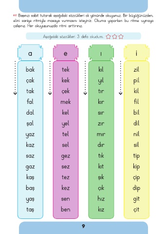 elini saniye ritmiyle masaya vurmasını isteyiniz. Okuma yaparken bu ritme uymaya