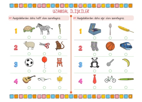 UZAMSAL İLİŞKİLER + Aşağıdakilerden daha hafif olanı işaretleyiniz. + Aşağıdakilerden daha ağır olanı işaretleyiniz. 7