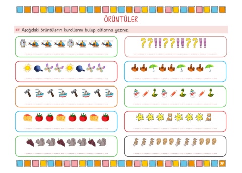 + Aşağıdaki örüntülerin kurallarını bulup altlarına yazınız.