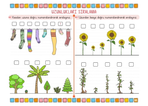 UZUNLUKLARI SIRALAMA + Kısadan uzuna doğru numaralandırarak sıralayınız. + Uzundan kısaya doğru numaralandırarak sıralayınız. 1 105