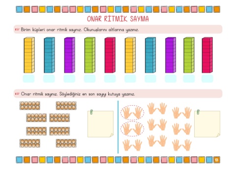 ONAR RİTMİK SAYMA + Birim küpleri onar ritmik sayınız. Okunuşlarını altlarına yazınız. + Onar ritmik sayınız. Söylediğiniz en son sayıyı kutuya yazınız. 13