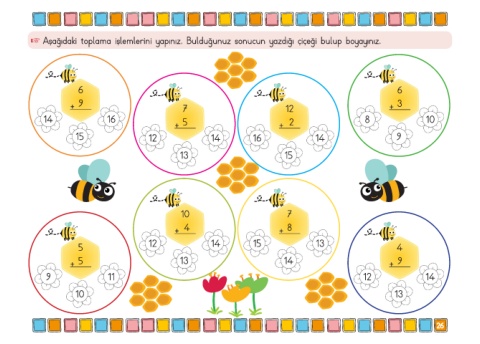+ Aşağıdaki toplama işlemlerini yapınız. Bulduğunuz sonucun yazdığı çiçeği bulup boyayınız. 6 6 + 9 7 12 + 3 14 16 8 10 + 5 + 2 15 12 14 16 14 9 13 15 10 7 + 4 + 8 5 12 14 15 13 4 + 5 13 14 + 9 9 11 12 14 10 13 26