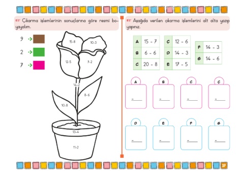 + Çıkarma işlemlerinin sonuçlarına göre resmi bo- + Aşağıda verilen çıkarma işlemlerini alt alta yazıp