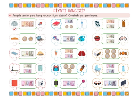 FİYATI HANGİSİ? + Aşağıda verilen para hangi ürünün fiyatı olabilir? Örnekteki gibi işaretleyiniz. 4 47