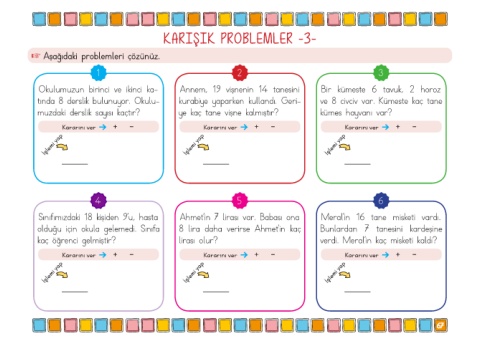 Okulumuzun birinci ve ikinci ka- Annem, 19 vişnenin 14 tanesini Bir kümeste 6 tavuk, 2 horoz
