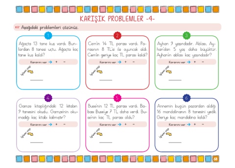 tane kuş kaldı? Cem’in geriye kaç TL parası kaldı? Ayhan’ın ablası kaç yaşındadır?