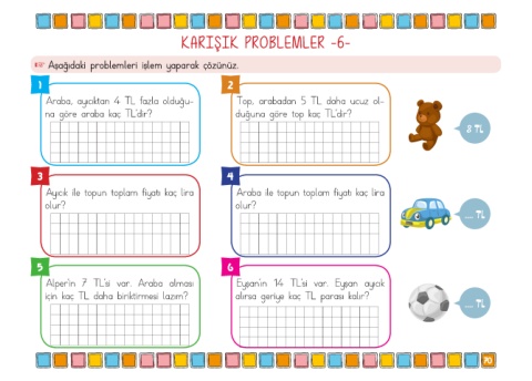 Araba, ayıcıktan 4 TL fazla olduğu- Top, arabadan 5 TL daha ucuz ol-