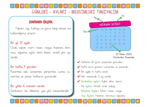 GÜNLERİ - AYLARI - MEVSİMLERİ TANIYALIM
