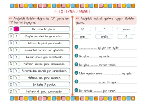 D Y Salıdan önceki gün pazartesidir. 2 Bir yılda ............. ay vardır.