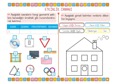 + Aşağıdaki nesnelerin hangi geometrik şekil- + Aşağıdaki görseli belirtilen renklerle dikkat-