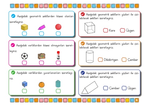 4 Aşağıdaki varlıklardan yuvarlananları işaretleyi- 4 Aşağıdaki geometrik şekillerin yüzleri ile çizi-