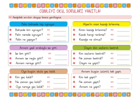 CÜMLEYİ OKU, SORULARI YANITLA!
