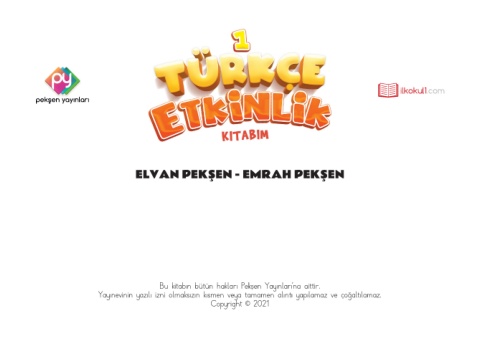 ilkokul1.com ELVAN PEKŞEN - EMRAH PEKŞEN Bu kitabın bütün hakları Pekşen Yayınları’na aittir. Yayınevinin yazılı izni olmaksızın kısmen veya tamamen alıntı yapılamaz ve çoğaltılamaz. Copyright © 2021