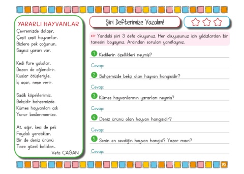 YARARLI HAYVAN LAR Şiiri Defterimize Yazalım!