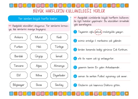 Yer isimleri büyük harfle başlar. + Aşağıdaki cümlelerde büyük harflerin kullanımı
