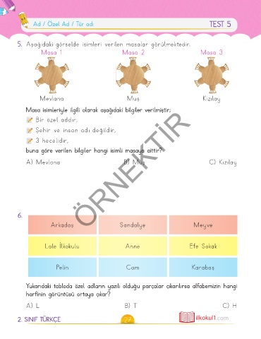 5. Aşağıdaki görselde isimleri verilen masalar görülmektedir.