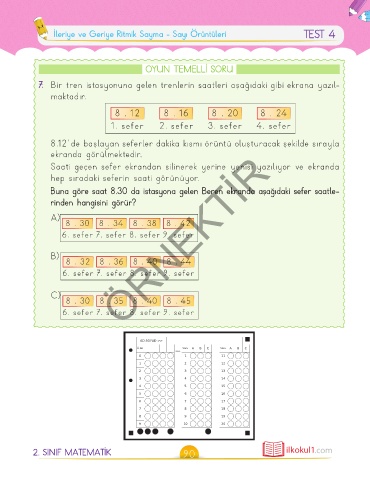 İleriye ve Geriye Ritmik Sayma - Sayı Örüntüleri TEST 4