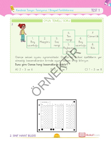 Kendimizi Tanıyor, Tanıtıyoruz / Bireysel Farklılıklarımız TEST 1