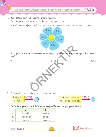 Tek Başına Anlamı Olmayan Kelime / Birleşik Kelime / Yabancı Kelimeler TEST 5