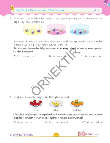 Doğal Sayıları Okuma ve Yazma / Ritmik Saymalar TEST 1
