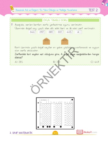Basamak Adı ve Değeri / En Yakın Onluğa ve Yüzlüğe Yuvarlama TEST 2
