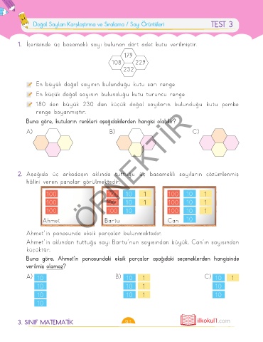 Doğal Sayıları Karşılaştırma ve Sıralama / Sayı Örüntüleri TEST 3