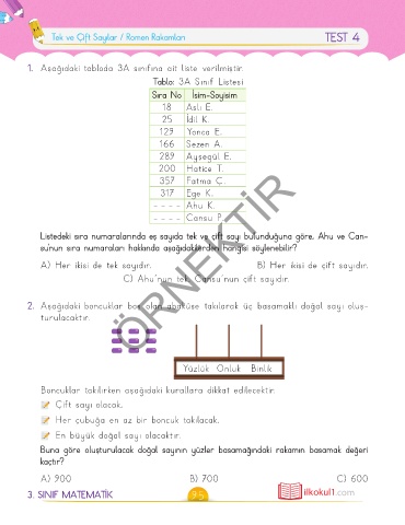 Tek ve Çift Sayılar / Romen Rakamları TEST 4