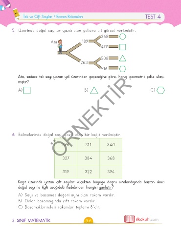 Tek ve Çift Sayılar / Romen Rakamları TEST 4
