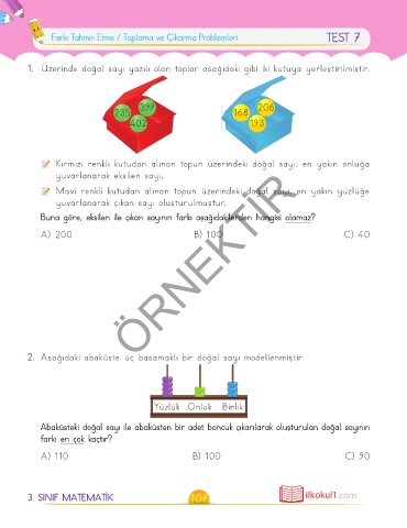 Farkı Tahmin Etme / Toplama ve Çıkarma Problemleri TEST 7